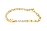 French for “You and Me,” the Toi et Moi Link Bracelet celebrates the beauty of two becoming one. A fusion of timeless sparkle and modern edge, this piece pairs a tennis chain with bold gold paperclip links symbolizing harmony, connection, and grace.